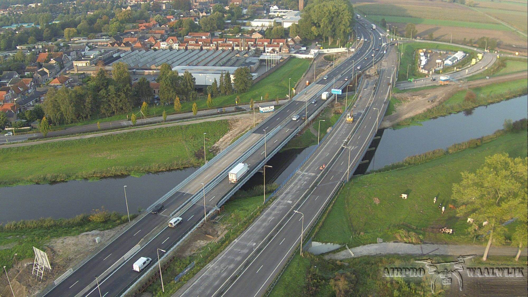 During the work (2015–2016), the A59 remained accessible thanks to a temporary bridge construction next to the existing bridge. A fine example of infrastructure planning and collaboration.